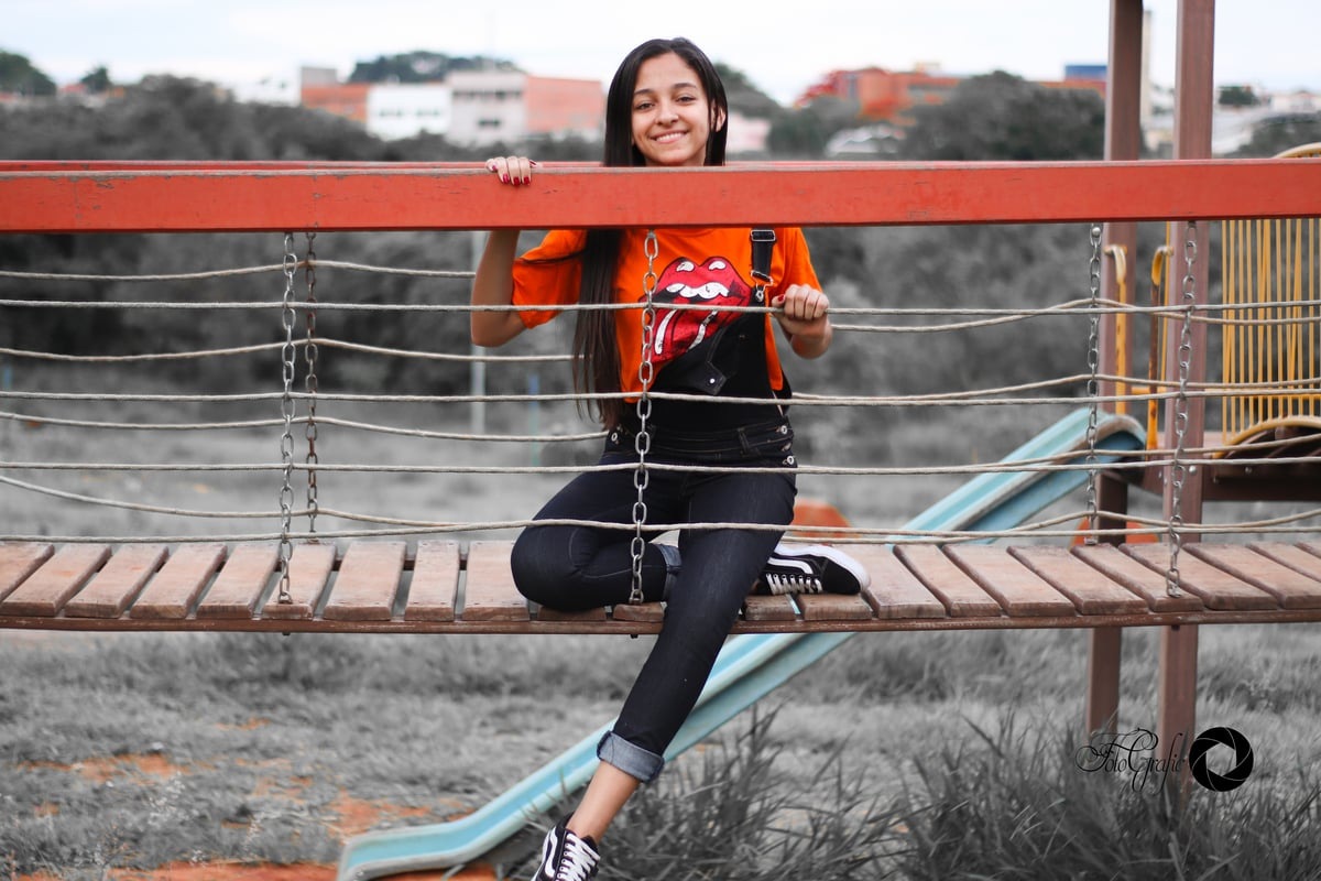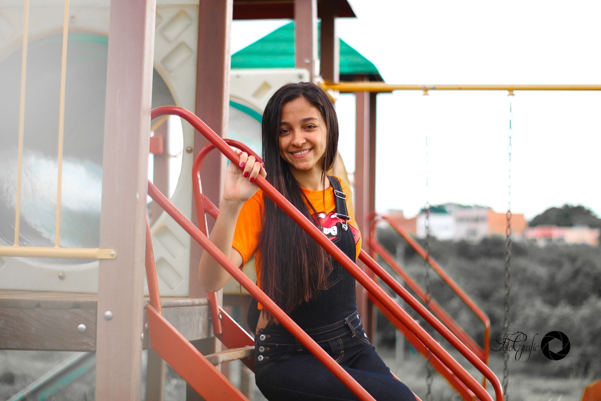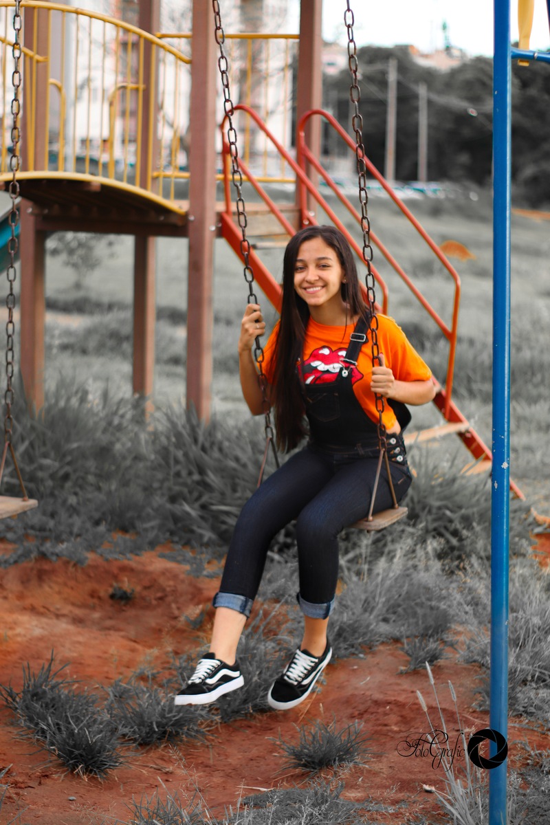Fomos no parquinho que ela frequentava quando criança, fotografamos com vizinha e melhor amiga.
